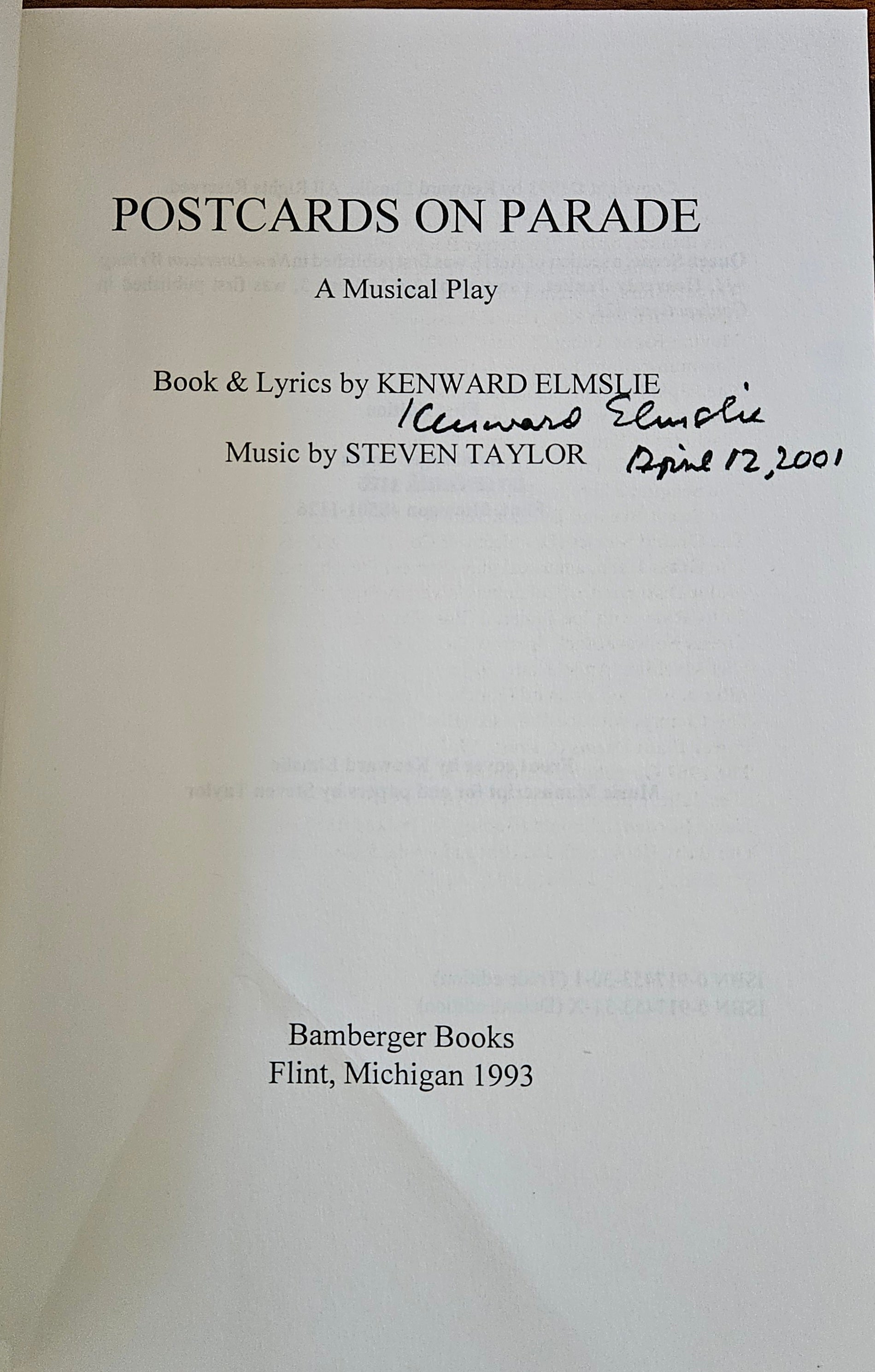 1st printing, Bamberger Books. Wraps bright, no markings to text, creasing to bottom 1/3rd of book due to prior owner's storing, binding tight. Signed & inscribed by Elmslie on flyleaf, signed again on full-title page.