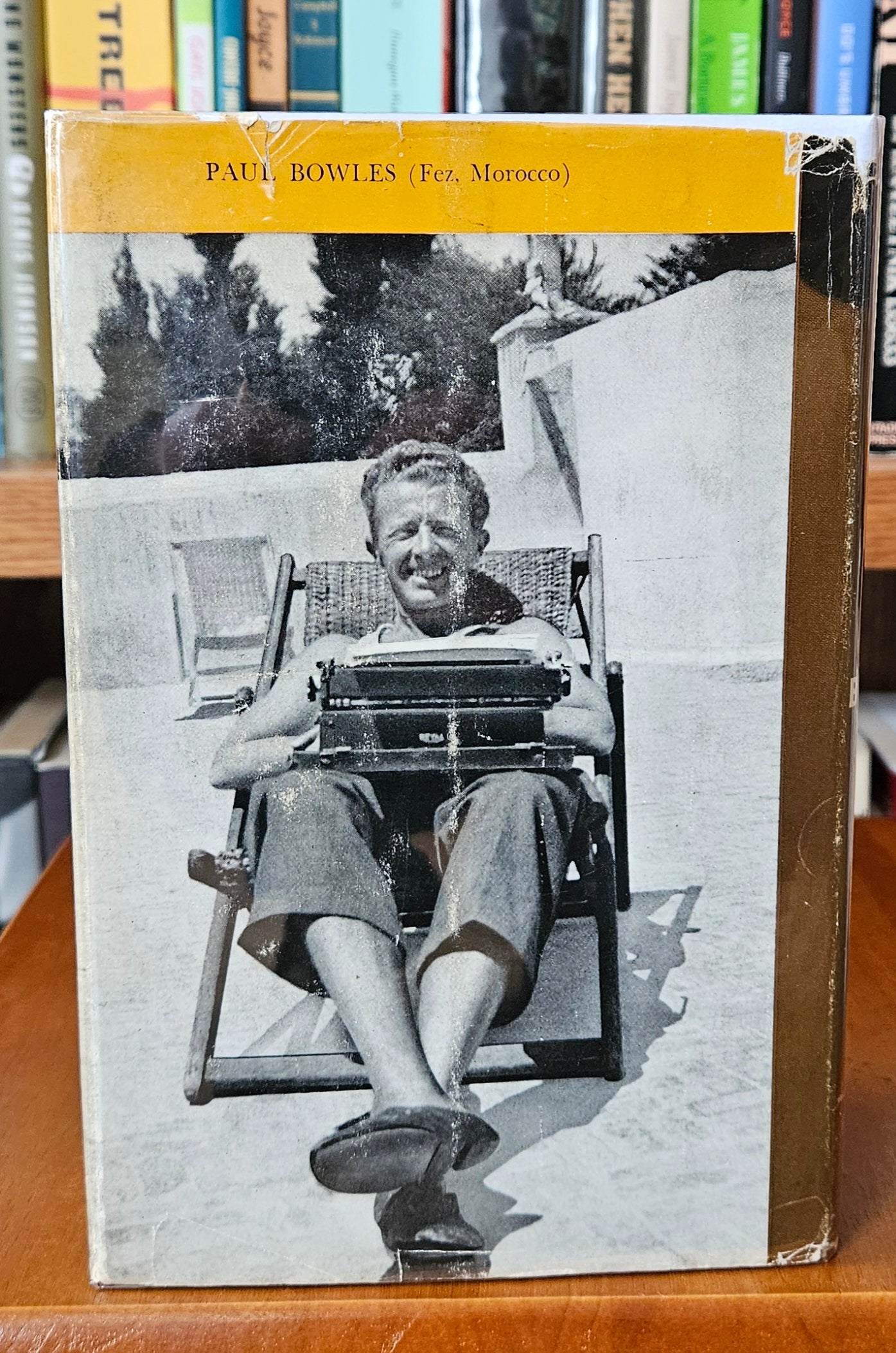 1st edition/1st printing, Random House. Unclipped DJ unusually bright with vibrant coloring for its age - paper loss on front & crown of spine (pictured), otherwise fairly minimal & age appropriate chipping & closed tears along edges, some rubbing & general shelf wear to front & back, sticker residue on back jacket flap; boards show some age but clean, light bumping at corners & a bump to front, bottom board edge, lettering & cut-out photo on front sharp, smudge on rear free paper; text clean of markings, binding very firm. A well-preserved, handsome copy of (arguably) Bowles' finest novel.